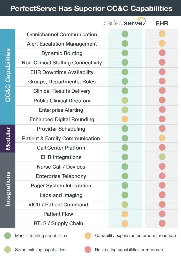 PerfectServe has consolidated the capabilities of 14 different communication and workflow point solutions into its platform, which can then be integrated with Epic and many other EHRs to equip those systems with communication and care coordination capabilities that extend far beyond the walls of the hospital.
